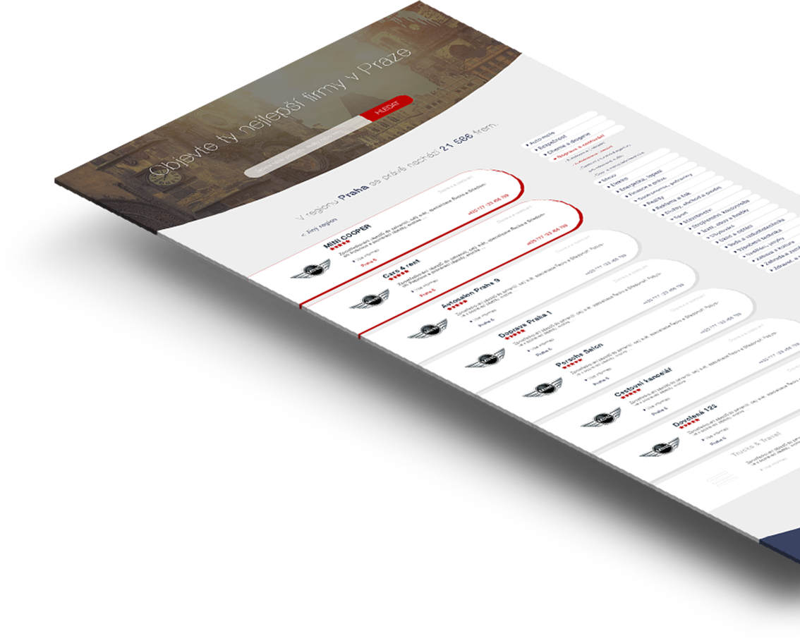 Online katalog podnikajících subjektů, který poskytuje svým zákazníkům moderní, přehlednou a responsivní vizitku s celorepublikovým, ale i regionálním cílením na koncové zákazníky.